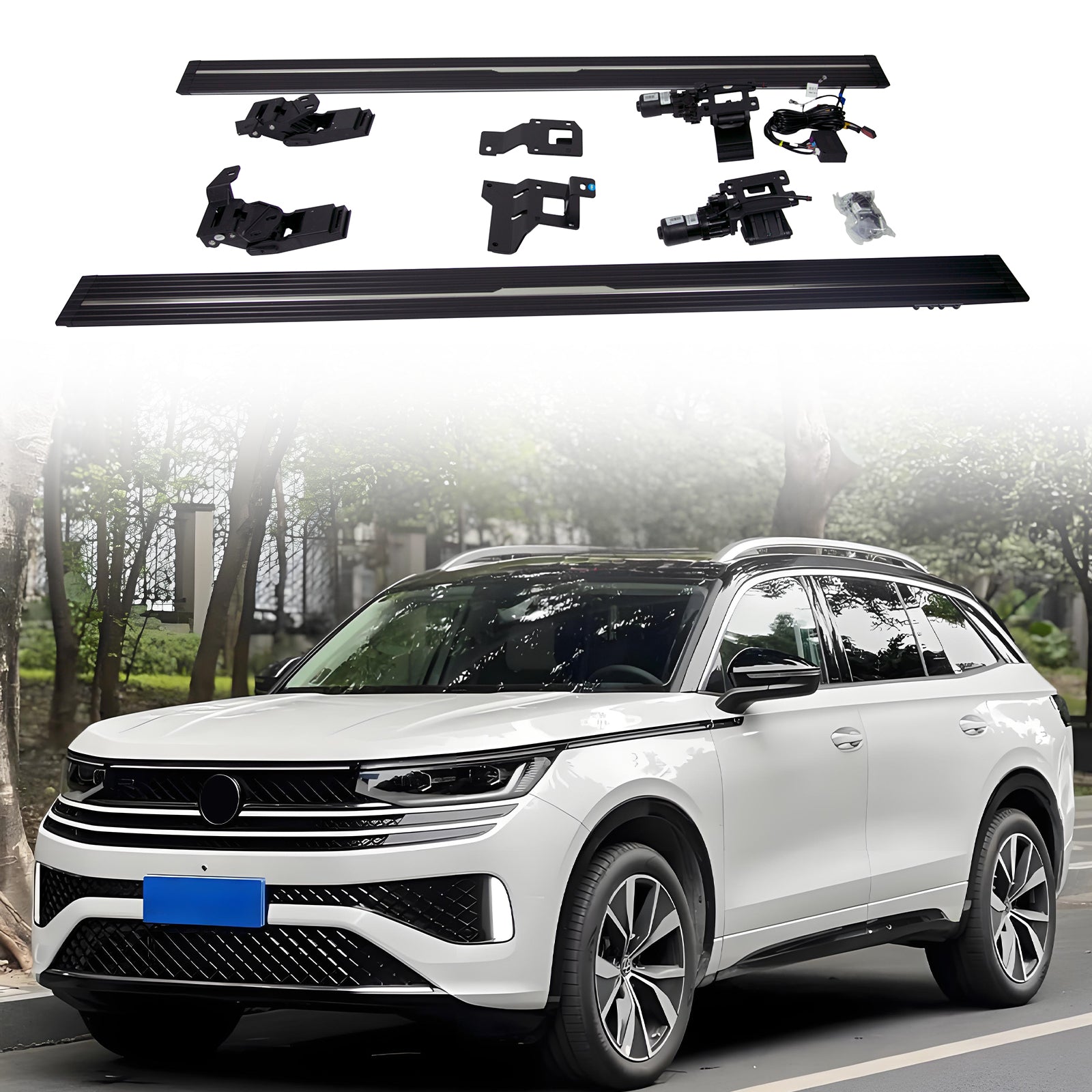 Pops out in 0.5 seconds when doors open, tucks under the car when closed. Rain-safe sensors prevent accidents.
