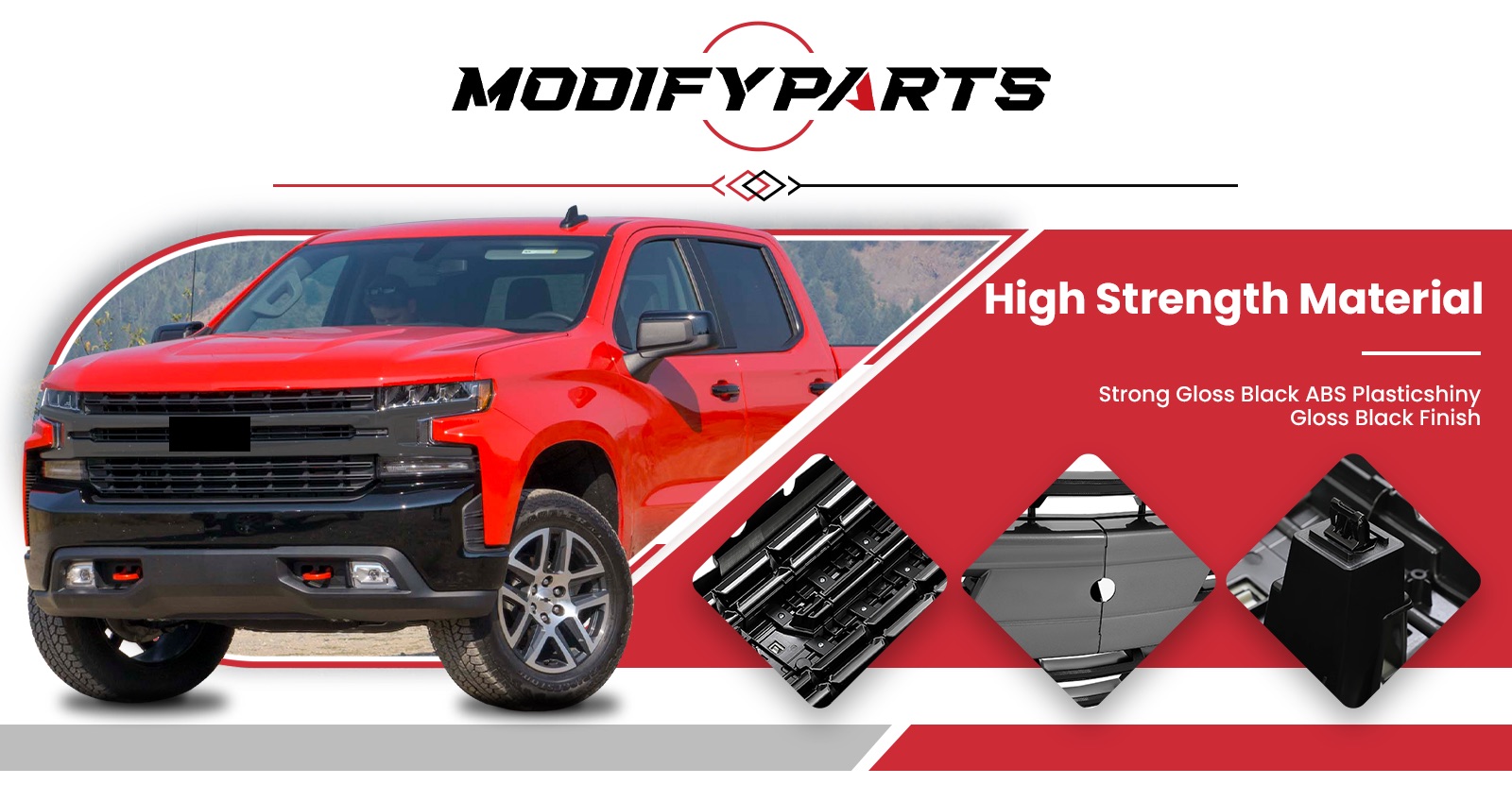 Strong Glossy Black ABS Plastic.Built tough with durable plastic for long-lasting looks and a deep, shiny black finish.